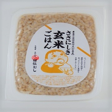 手軽にふっくらやわらかい玄米が食べられるレトルト包装米飯。田伝むしの農薬不使用ササニシキの玄米です。