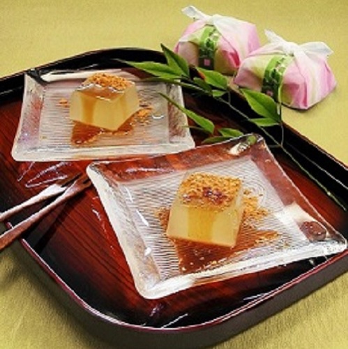 | 葛餅は冷やすとより一層おいしく召し上がって頂けます。冷蔵庫に1時間ほど冷やして下さい。添付の黒みつ、きな粉をかけてお召し上がり下さい。 |