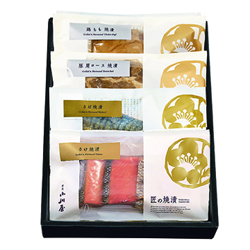 | 内容量 | 匠の焼漬 さけ(3切入)・さば(3切入)各1袋 お肉の焼漬 豚肉(1切入)・鶏肉(1切入)各1袋 |