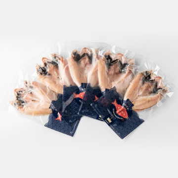 通常の干物に比べ、乾燥時間をやや短めに設定している当店の干物。身の中に水分と旨味を保っており、焼いた時にジューシーな食べ応えになるよう、身の面は表面に焦げ目が付く程度の焼き加減でお召し上がりください。※フライパンでも美味しく焼けます。焼き方レシピを商品に同梱しています。
